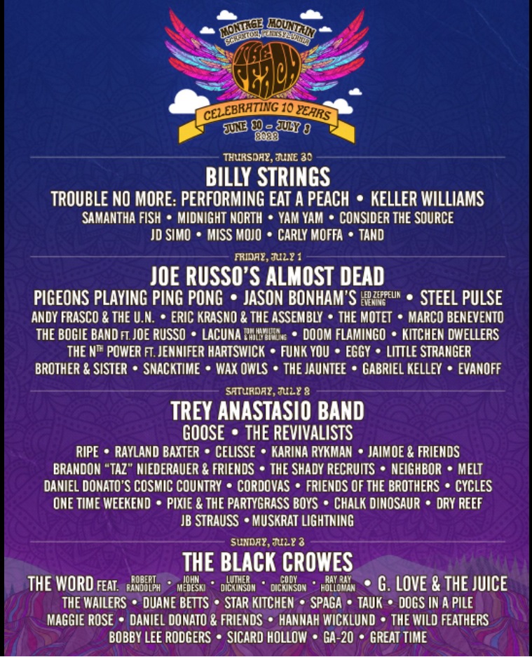 | Jun 30 - Jul 3, 2022 | Montage Mountain, Scranton PA | Peach Festival